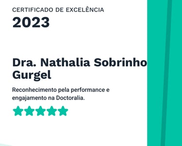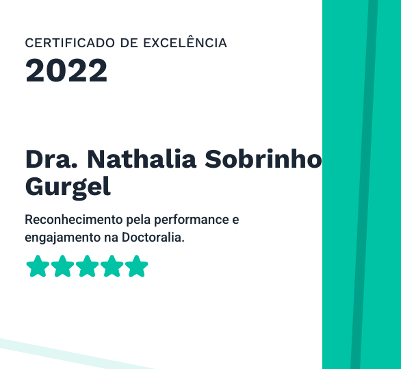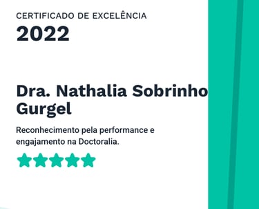 Eu sou a Dra. Nathália Gurgel, médica psiquiatra. Realizei minha residência médica em Psiquiatria pela Secretaria Estadual de Saúde do Rio de Janeiro e tenho formação em Psiquiatria Forense pelo Instituto de Psiquiatria da USP, em São Paulo.